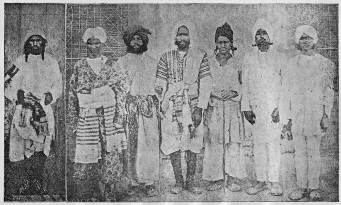 | 9. | Specimens of Burishkis of Hunza, Nagyr, and Yasin. (Facing page 1 of Appendix I.) “Hunza and Nagyri Warriors, separated by Yasinis.” |
