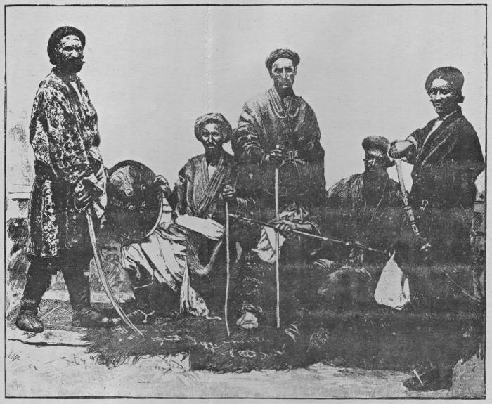 | 6. | “Our Manufactured Foes:” a Tangir Student, a Nagyri Peasant, a Dareyli Herdsman, and a Hunza Fighter (the first Hunza man taken to Europe in 1886). (Facing page 76.) |