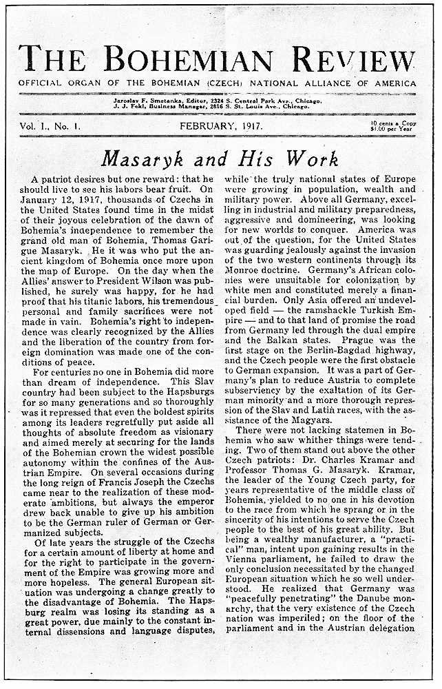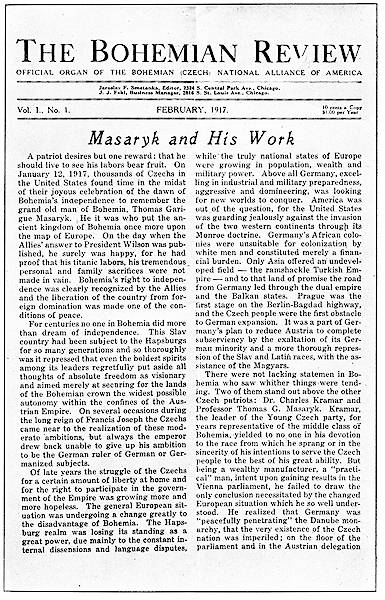 It sounds incredible, yet it is literally true, that every Slavic nation was, before the war, and probably still is, better known to the English speaking people than the Bohemians (Čechs). What is the reason? That the Bohemians, who are the most literate of all the Slavs, have remained undiscovered may be attributed to three main causes: They are not a free nation. They are a landlocked nation. They are rated a small nation.