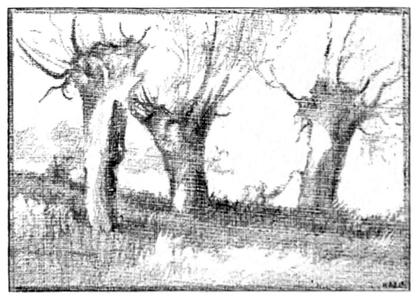 A striking exception to these is seen in Mr. Alfred Hartley’s drawing of a pasturage. It is full of tender, pearly greys, and is drawn with the lightest of hands, but with a peculiar disposition of pen-strokes that no professional pen-draughtsman would employ, because of his [Pg 160] constant care to give the process-man the easiest of problems. And the autocrat of the rocking-bath and the etching-room would veto such work as this; yet, you will observe, it comes excellently well by the ordinary zinc processes.