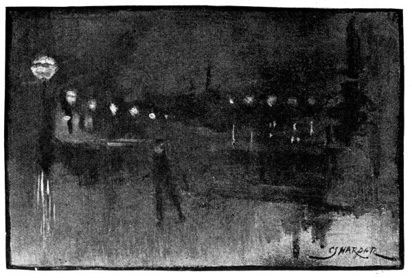 Pure transparent water-colour washes do not give such good effects in reproduction as work in body-colour. Chinese white mixed with lampblack comes beautifully. Charcoal-grey, of recent introduction, is not so well adapted to the admixture of body-colour. Altogether, charcoal-grey, although a very admirable colour, is a difficult material unless you know exactly at starting a drawing what you intend to do. The illustration, Victoria Embankment: a Foggy Night, was made in it on rough paper. The nature of the subject rendered the execution of the drawing easy, but in a drawing which runs the whole gamut of tone, its unstable qualities forbid its use by the novice. [Pg 125]