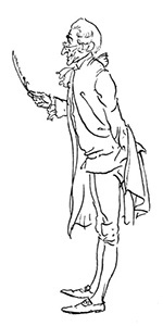 The appearance of Rip, with his long, grizzled beard, his rusty fowling-piece, his uncouth dress, and an army of women and children at his heels, soon attracted the attention of the tavern politicians. They crowded round him, eyeing him from head to foot with great curiosity. The orator bustled up to him, and, drawing him partly aside, inquired “On which side he voted?” Rip stared in vacant stupidity. Another short but busy little fellow pulled him by the arm, and, rising on tiptoe, inquired in his ear, “Whether he was Federal or Democrat?” Rip was equally at a loss to comprehend the question; when a knowing, self-important old gentleman, in a sharp cocked hat, made his way through the crowd, putting them to the right and left with his elbows as he passed, and planting himself before Van Winkle, with one arm akimbo, the other resting on his cane, his keen eyes and sharp hat penetrating, as it were, into his very soul, demanded in an austere tone, “What brought him to the election with a gun on his shoulder, and a mob at his heels; and whether he meant 19 to breed a riot in the village?” “Alas! gentlemen,” cried Rip, somewhat dismayed, “I am a poor quiet man, a native of the place, and a loyal subject of the king, God bless him!”