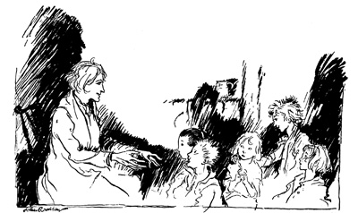 Certain it is that he was a great favourite among all the good wives of the village, who, as usual with the amiable sex, took his part in all family squabbles; and never failed, whenever they talked those matters over in their evening gossipings, to lay all the blame on Dame Van Winkle. The children of the village, too, would shout with joy whenever he approached. He assisted at their sports, made their playthings, taught them to fly kites and 5 shoot marbles, and told them long stories of ghosts, witches, and Indians. Whenever he went dodging about the village, he was surrounded by a troop of them, hanging on his skirts, clambering on his back, and playing a thousand tricks on him with impunity; and not a dog would bark at him throughout the neighbourhood.