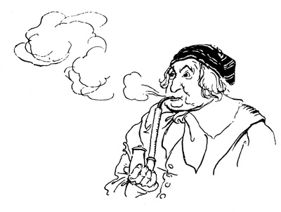 The opinions of this junto were completely controlled by Nicholas Vedder, a patriarch of the village, and landlord of the inn, at the door of which he took his seat from morning till night, just moving sufficiently to avoid the sun and keep in the shade of a large tree; so that the neighbours could tell the hour by his movements as accurately as by a sun-dial. It is true he was rarely heard to speak, but smoked his pipe incessantly. His adherents, however (for every great man has his adherents), perfectly understood him, and knew how to gather his opinions. When anything that was read or related displeased him, he was observed to smoke his9 pipe vehemently, and to send forth short, frequent, and angry puffs; but when pleased, he would inhale the smoke slowly and tranquilly, and emit it in light and placid clouds; and sometimes, taking the pipe from his mouth, and letting the fragrant vapour curl about his nose, would gravely nod his head in token of perfect approbation.