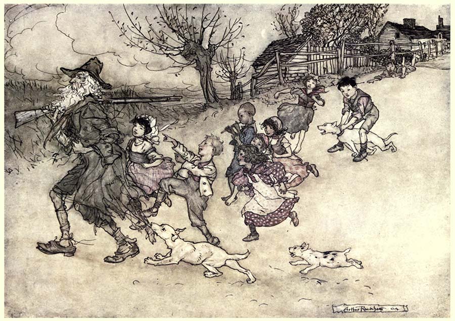 | “A troop of strange children ran at his heels, hooting after him and pointing at his grey beard” | 14 |