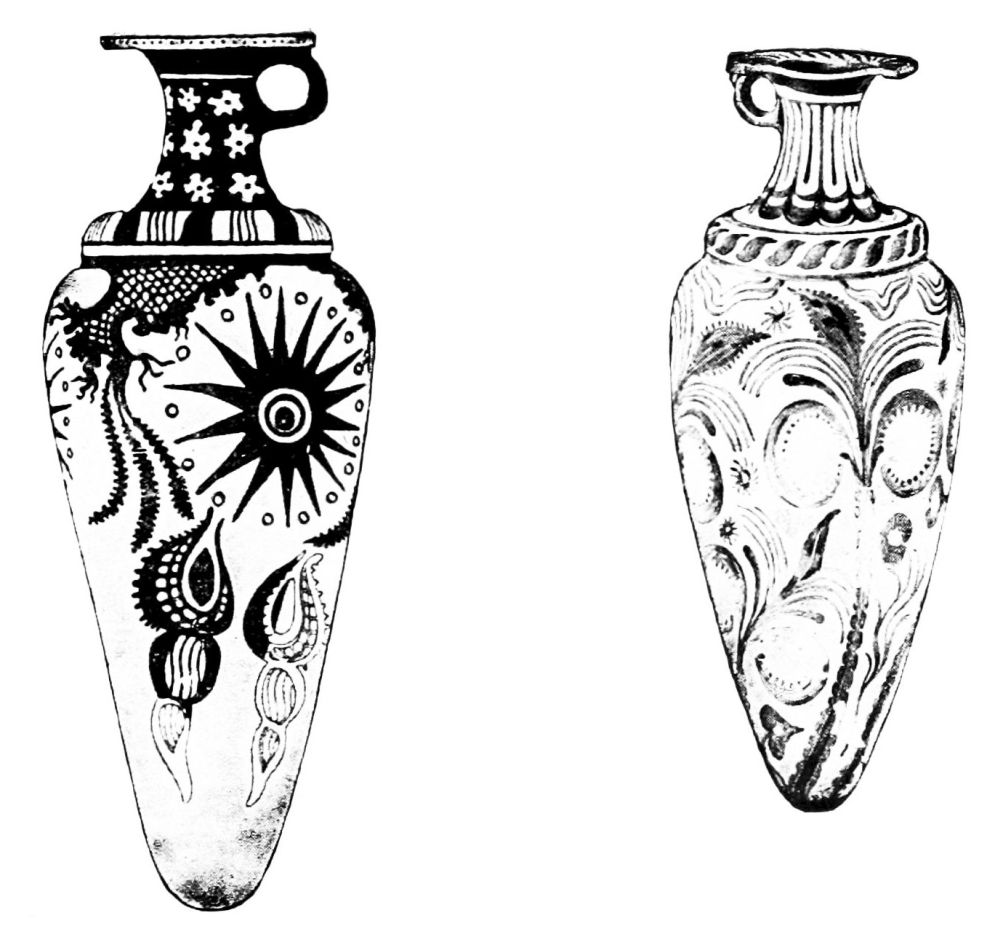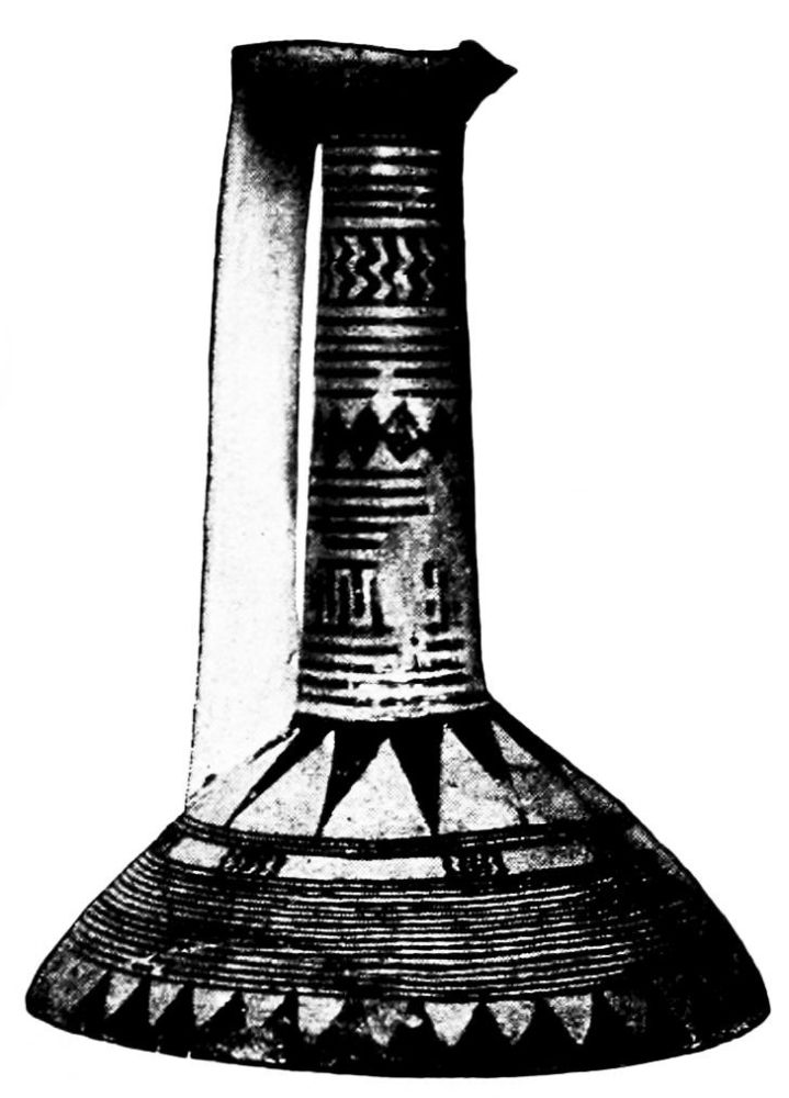 The Stone Age is succeeded by the Bronze Age, here{4} earlier and there later; here more quickly, there more slowly; i.e., metals are gradually introduced, and with them new techniques and a new civilization. It is evident that to the earlier Bronze Age belong a series of innovations which are of decisive importance for the history of vases, the invention of the potter’s wheel, the perfection of the so-called ‘varnish,’ and the imitation of metal forms in clay. In most places the potter’s oven and the painting of vases appear only in the early Bronze Age.
