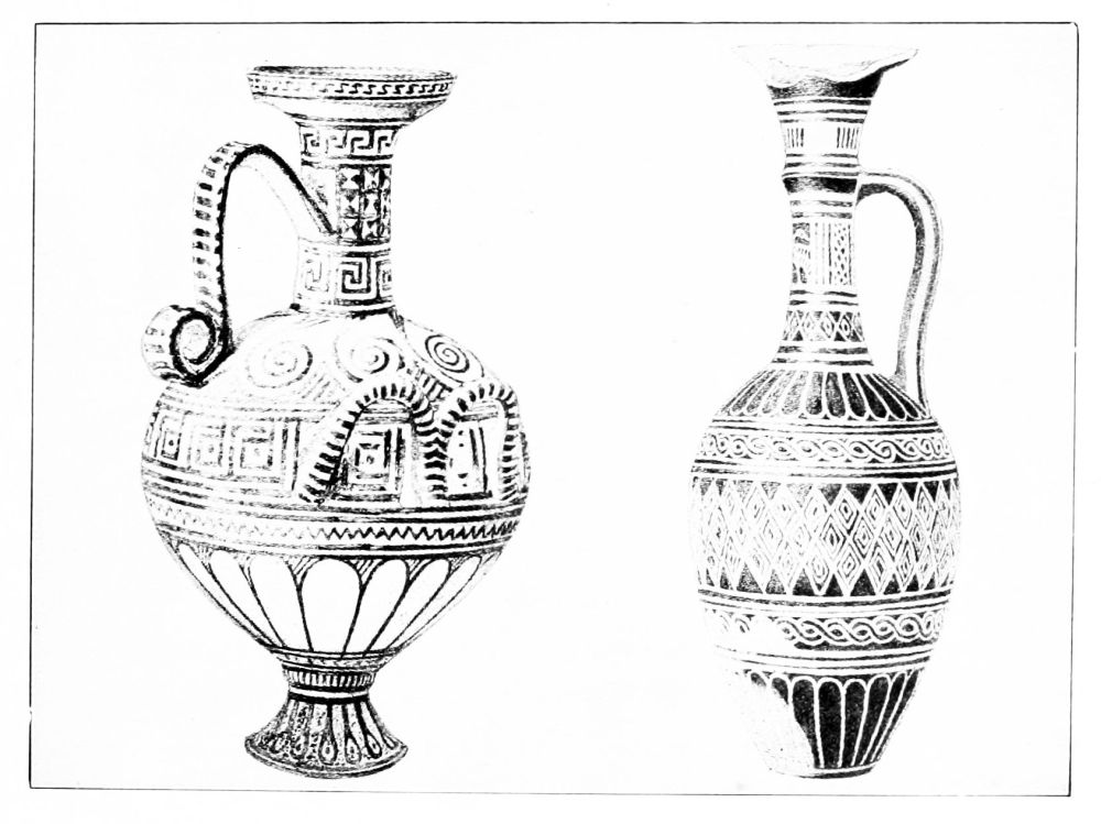 STUDENTS of the history of Greek vases have been gradually led backwards from a late period to earlier and earlier stages of civilization by the course of circumstances. First of all graves were opened in Lower Italy; the first great collection of vases, formed by Sir William Hamilton, British ambassador in Naples, and published in 1791-1803, contained chiefly the output of later Italian manufactories. Next, from 1828 onwards, the doors of Etruscan graves were unlocked, and their contents proved to be the rich treasures of Greek red and black-figured vases, procured in such numbers by the Etruscans of the 6th and 5th centuries. About twenty years later a bright light was thrown on eastern Greek pottery of the 7th century by the discovery of a cemetery in Rhodes. About 1870 the ‘Geometric’ style became known and the Dipylon vases at Athens were revealed. In the seventies and eighties Schliemann’s spade unearthed the Mycenean civilization, and in the beginning of the present century we were introduced to the culmination of this period in Crete. Finally in quite recent times finds of vases of the Stone Age in Crete and in North Greece have given us a view of vase-production in the third millennium B.C. If therefore we wish to retrace this long road, we must begin at a period, of which the investigation has only just begun and which presents most difficult problems.
