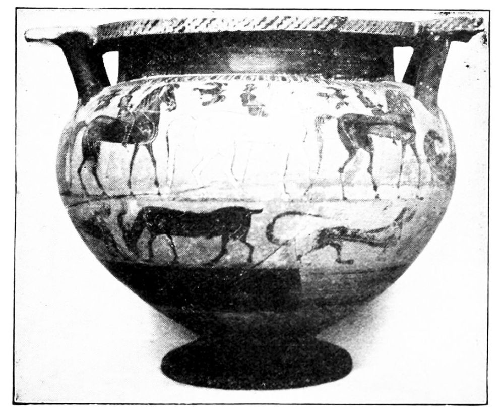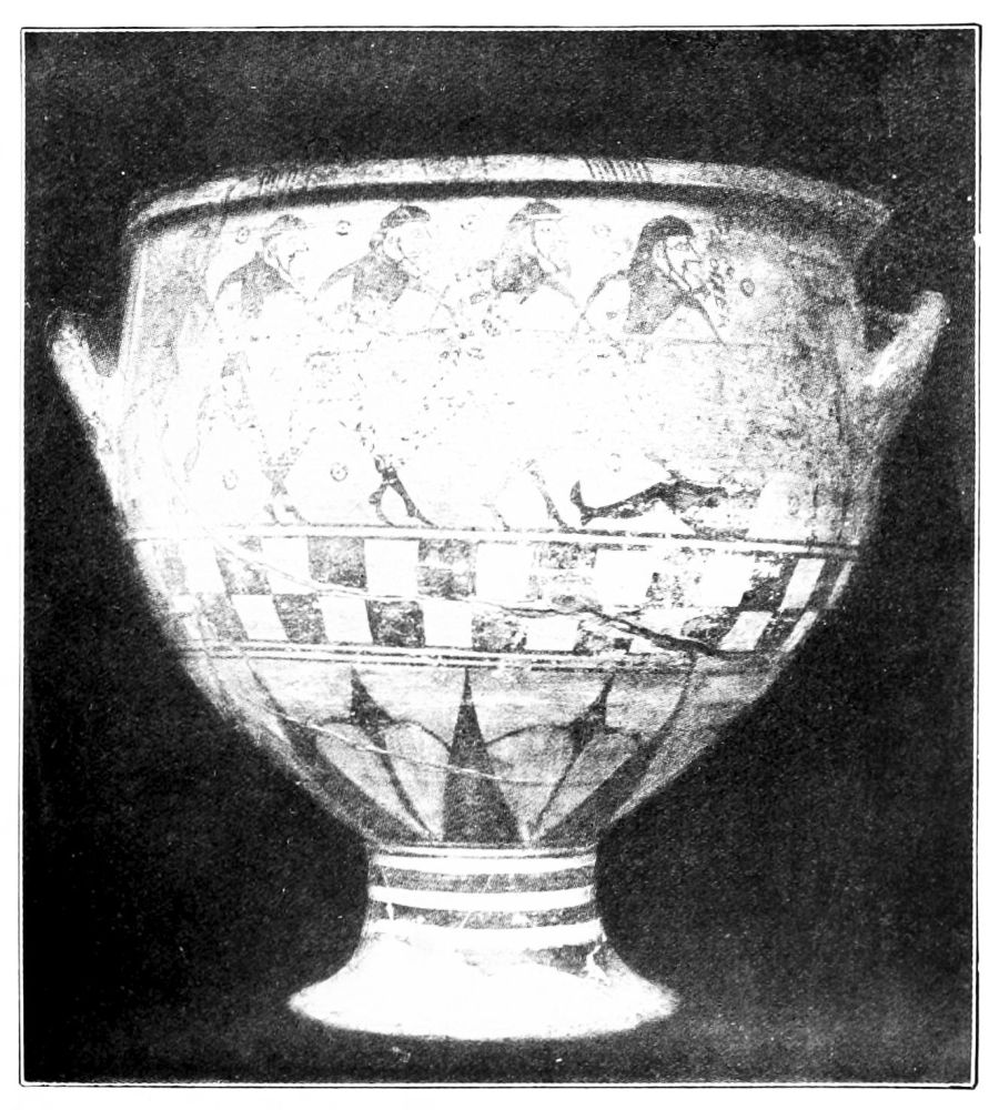 Before that time, before the age of Crœsus and the rise of the Persian Empire, the history of Greece is very imperfectly known to us, through the traditions of the temples and the old families, which are seldom wholly to be trusted. Where history is uncertain it is of untold value to have monuments and works of human manufacture to supplement it. These provide a skeleton of fact with which to compare legend and tradition. It is now generally recognized that before writings in the form of inscriptions{x} and coins come into general use, pottery furnishes the most continuous and most trustworthy material for the dating of sites, indications of commercial intercourse, the movements of peoples. In recent years the study of prehistoric Greece has made immense strides, primarily owing to the excavations of Schliemann, Evans and other investigators. The subject seems to fascinate the younger generation of archæologists; and the pottery found in the graves of the early inhabitants of Greece and Asia Minor has been worked at with great minuteness and to much result. It has revealed to us the outlines of the early history of Crete, the Troad, Laconia, Thessaly, and a number of other districts. Constant comparison with the results of finds in Egypt which can be dated from inscriptions has revealed in a measure the state of the civilization of the Ægean in century beyond century, back to Neolithic times.