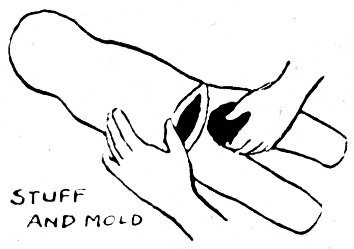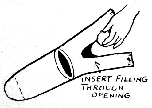 Turn sock right side out. Stuff with one hand and mold shape to suit with other.