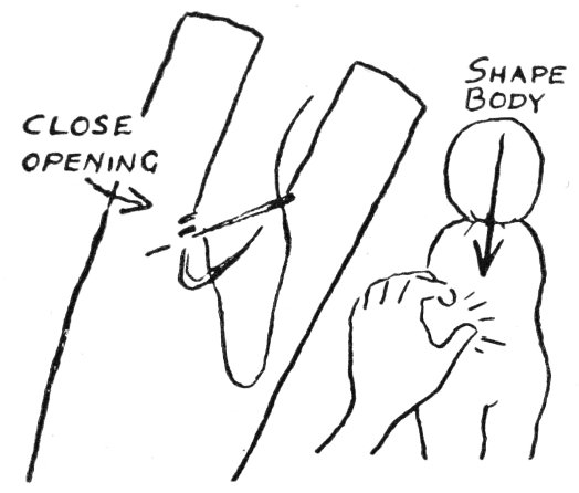 Sew up opening in body to bring legs together and to prevent them from bowing out.