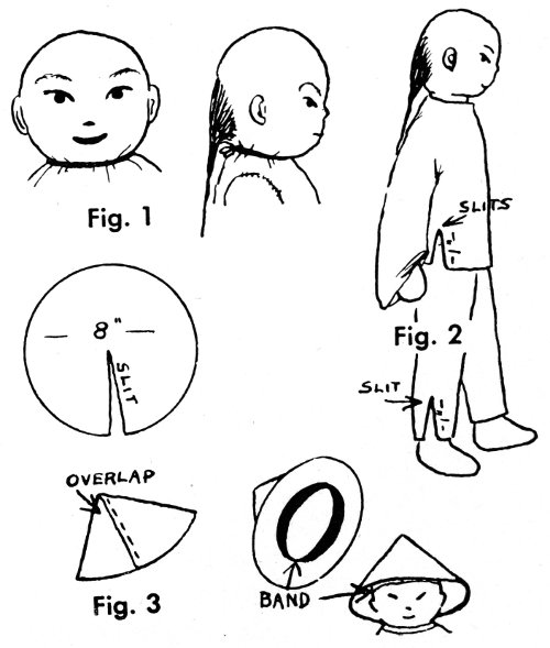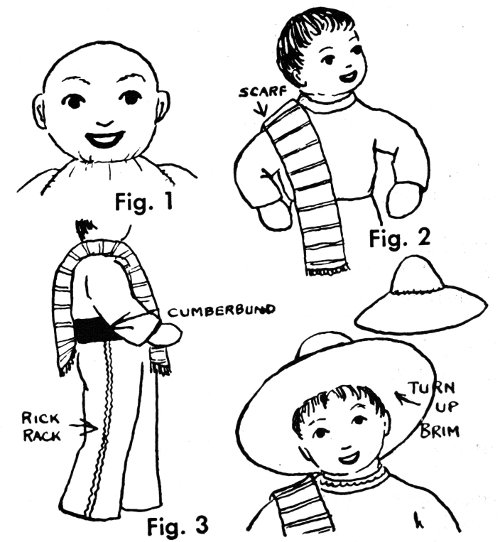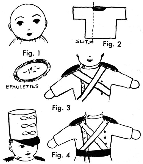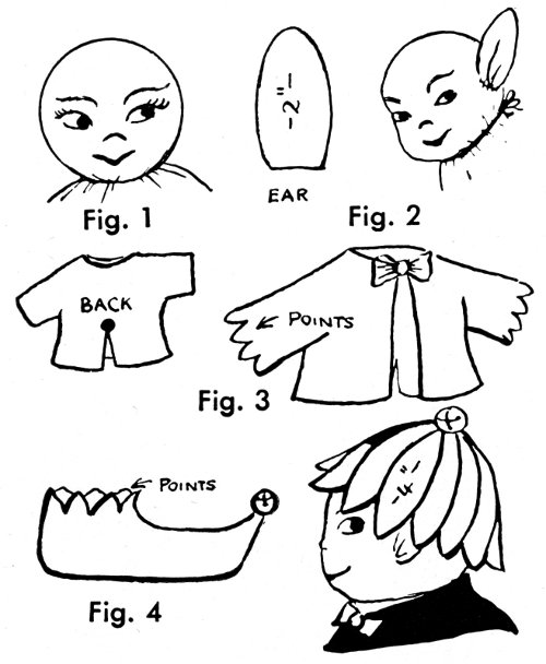 TRIM: Tie a bow of 1″ wide bright ribbon around neck. Or make Mr. Teddy Bear a soldier, engineer, cowboy or any other colorful character by using the doll costumes shown in this book.