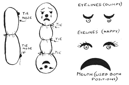 EYES: Sew on round or oblong buttons set apart. Embroider eyes for small children.