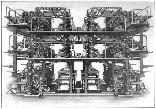 These new methods, of course, entirely superseded the “Hoe Type Revolving Machine,” which had reigned supreme in the newspaper world for over twenty years, and of which one hundred and seventy-five had been made, almost all of which have now disappeared.
