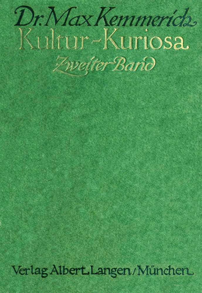 The Project Gutenberg EBook of Kultur-Kuriosa, Zweiter Band, by Max Kemmerich This eBook is for the use of anyone anywhere in the United States and most other parts of the world at no cost and with almost no restrictions whatsoever. You may copy it, give it away or re-use it under the terms of the Project Gutenberg License included with this eBook or online at www.gutenberg.org. If you are not located in the United States, you'll have to check the laws of the country where you are located before using this ebook. Title: Kultur-Kuriosa, Zweiter Band Author: Max Kemmerich Release Date: November 18, 2020 [EBook #63801] Language: German Character set encoding: UTF-8 *** START OF THIS PROJECT GUTENBERG EBOOK KULTUR-KURIOSA, ZWEITER BAND *** Produced by Peter Becker, Reiner Ruf, and the Online Distributed Proofreading Team at https://www.pgdp.net (This file was produced from images generously made available by The Internet Archive)