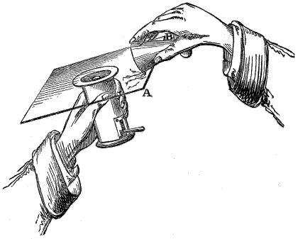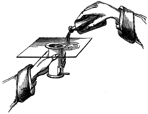 This being the principal material we have to use, we must exercise great care in the selection of a sample that possesses all the characteristics which fit it for a dry process. We must reject all samples that possess great tenacity and contractile power: the Collodion must not be too thick, and it must flow evenly over the plate, and not set in ridges. The best condition for the Iodized Collodion is that known as powdery, that is, being spread on the plate and partially dry, it cannot be removed as a film, but crumbles up on being pressed by the finger in its passage across the plate; in fact, such a condition as [10] would arise from using gun cotton prepared with acids at a high temperature.