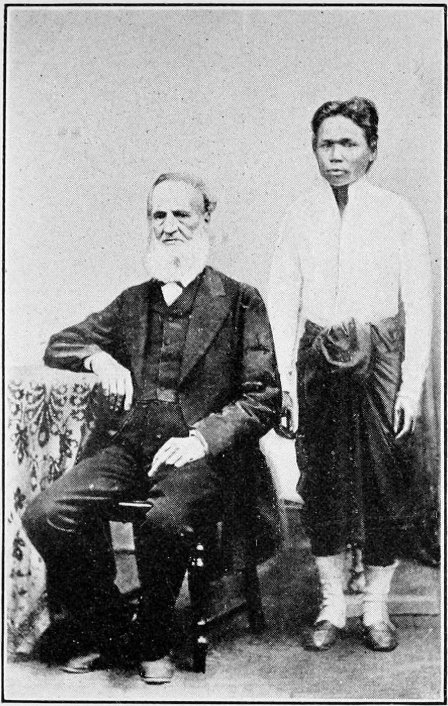 “No one who has done country evangelistic work with Dr. McGilvary can ever forget the oft-seen picture of the gray-haired patriarch seated on the bamboo floor of a thatch-covered Lāo house, teaching some one to read. Of course, the book faced the pupil, and it was 4often said that he had taught so many people in this way that he could read the Lāo character very readily with the book upside down. Little children instinctively loved him, and it is therefore needless to say that he loved them. In spite of his long snow-white beard, never seen in men of this land and a strange sight to any Lāo child, the children readily came to him. Parents have been led to God because Dr. McGilvary loved their children and laid his hands upon them. In no other capacity was the spirit of the man more manifest than in that of a shepherd. Always on the alert for every opportunity, counting neither time nor distance nor the hardship of inclement weather, swollen streams, pathless jungle, or impassable road, he followed the example of his Master in seeking to save the lost. His very last journey, which probably was the immediate cause of his last illness, was a long, wearisome ride on horseback, through muddy fields and deep irrigating ditches, to visit a man whom he had befriended many years ago and who seemed to be an inquirer.”