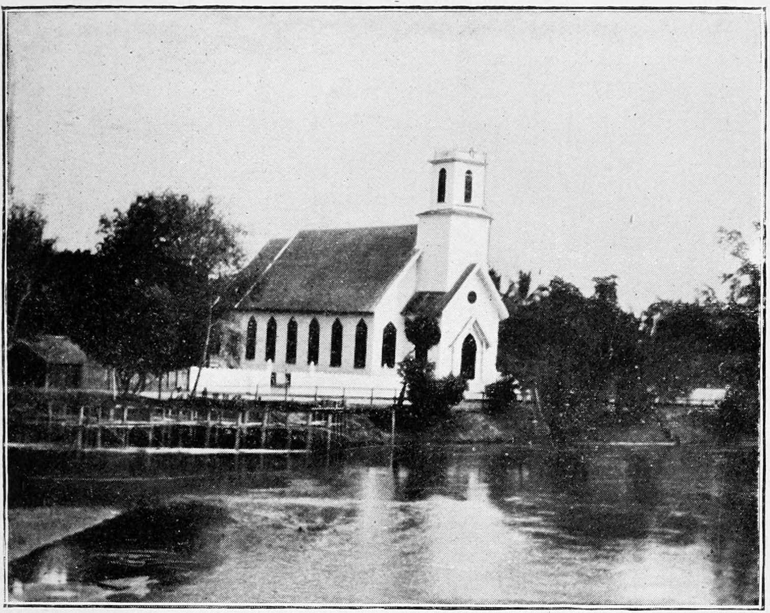 Not only the missionaries but the Lāo people loved him as a friend and venerated him as a father. Some of his intimate friends were the abbots and monks of the Buddhist monasteries and the high officials of the country. No one could know him without recognizing the nobility of soul of this saintly patriarch, in whom was no guile. December 6th, 1910, many Americans and Europeans celebrated the fiftieth anniversary of his marriage. The King of Siam through Prince Damrong, Minister of the Interior, sent a congratulatory message. Letters, telegrams, and gifts poured in from many different places. The Christian people of the city presented a large silver tray, on which was engraved: “The Christian people of Chiengmai to Dr. and Mrs. McGilvary, in memory of your having brought the Gospel of Jesus Christ to us forty-three years ago.” The tray showed in relief the old rest-house where Dr. and Mrs. McGilvary spent their first two years in Chiengmai, the residence which was later their home of many years, the old dilapidated bridge, and the handsome new bridge which spans the river opposite the Christian Girls’ School—thus symbolizing the old and the new eras.
