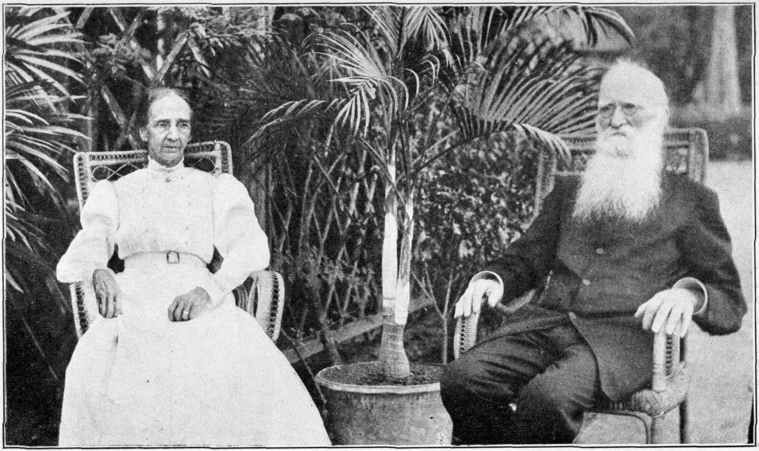 “No one who has done country evangelistic work with Dr. McGilvary can ever forget the oft-seen picture of the gray-haired patriarch seated on the bamboo floor of a thatch-covered Lāo house, teaching some one to read. Of course, the book faced the pupil, and it was 4often said that he had taught so many people in this way that he could read the Lāo character very readily with the book upside down. Little children instinctively loved him, and it is therefore needless to say that he loved them. In spite of his long snow-white beard, never seen in men of this land and a strange sight to any Lāo child, the children readily came to him. Parents have been led to God because Dr. McGilvary loved their children and laid his hands upon them. In no other capacity was the spirit of the man more manifest than in that of a shepherd. Always on the alert for every opportunity, counting neither time nor distance nor the hardship of inclement weather, swollen streams, pathless jungle, or impassable road, he followed the example of his Master in seeking to save the lost. His very last journey, which probably was the immediate cause of his last illness, was a long, wearisome ride on horseback, through muddy fields and deep irrigating ditches, to visit a man whom he had befriended many years ago and who seemed to be an inquirer.”