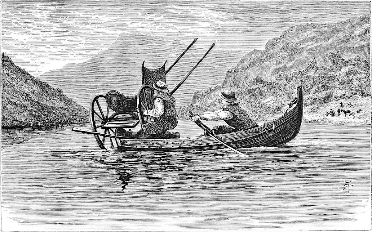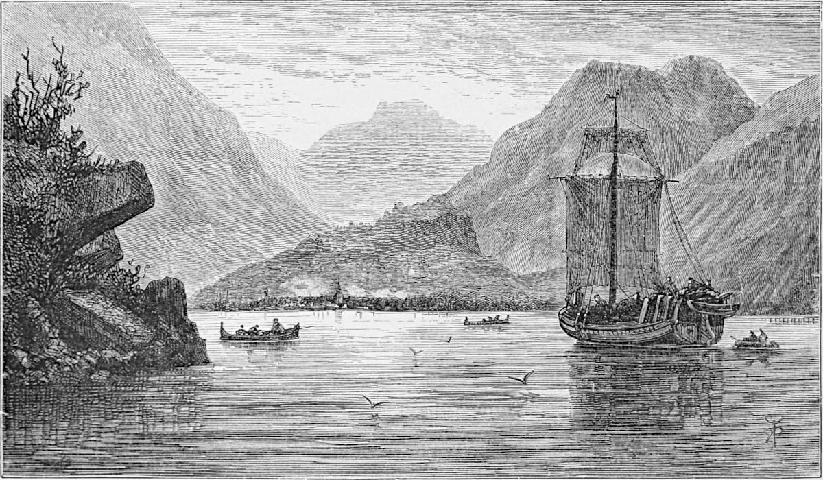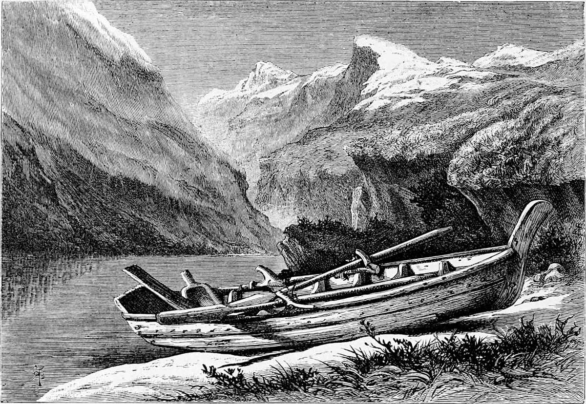 Little is said here of the cities of Christiania, Bergen, and Trondhjem, as our path lies in the open, the fjeld life, sæters, peasants, and sport. Our delight is to live out of the present century in fresh air and simplicity, where trolds might cross our path, where we might see the lovely Huldre, the beauty who had the unfortunate appendage of a cow’s tail, which, when exposed to view, was the signal for her to vanish into thin air, or where Odin and Thor had had great jagt, and killed bears, elks, gluttons, and wolves. The scenes we14 longed for were those in which pagan rites had been carried out with all the grandeur of mighty warriors and priests worthy of Valhalla; wherein Vikings, after deeds of valour, were laid low, and buried with great solemnity and becoming pomp in their own war vessels, with their treasure, their arms, and their hunting-gear about them, waiting for the call to glory.