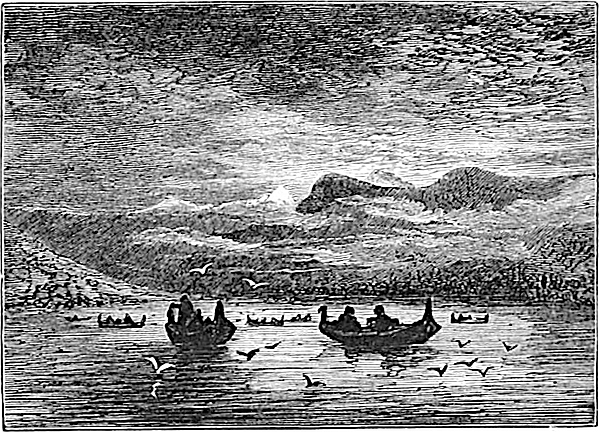 We were soon at the Victoria Hotel, with its quaint courtyard, with galleries running round it, excessively tame pigeons hopping and perching on all sides, and a reindeer head nailed to the woodwork. During the tourist season a large marquee is erected in the centre of this courtyard for tables d’hôte and extra meals. In the meantime we hurried to our rooms, longing to be out in a boat for a general view of the city. A few extras were, however, requisite before starting in real earnest, amongst which were two rifle slings. These had to be made, and are referred to here because they were the means of initiating us into one of the customs of the place. The leather slings were well made, but the price was most tolky (exorbitant). This led to a mild remonstrance, upon which the saddler wrote us a remarkable letter, which it is a pity we cannot present verbatim. It was to the effect that the saddler was happy to serve us well, but thinking we were English gentlemen, he imagined we should prefer giving English prices. However, if we merely wished to pay in accordance with the Norwegian tariff, it would only be so much, which was precisely the amount we did pay.