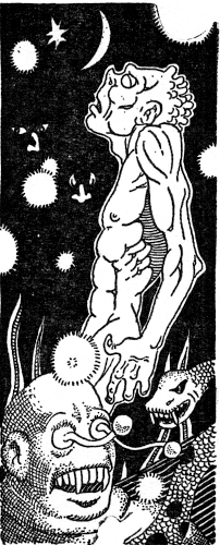His small stringy body hunched over the control bank, nursing the last ounce of power out of the Kallman. The hot night sky of Venus fled past the ports in tattered veils of indigo. Starke wasn't sure where he was any more. Venus was a frontier planet, and still mostly a big X, except to the Venusians—who weren't sending out any maps. He did know that he was getting dangerously close to the Mountains of White Cloud. The backbone of the planet, towering far into the stratosphere, magnetic trap, with God knew what beyond. Maybe even God wasn't sure.