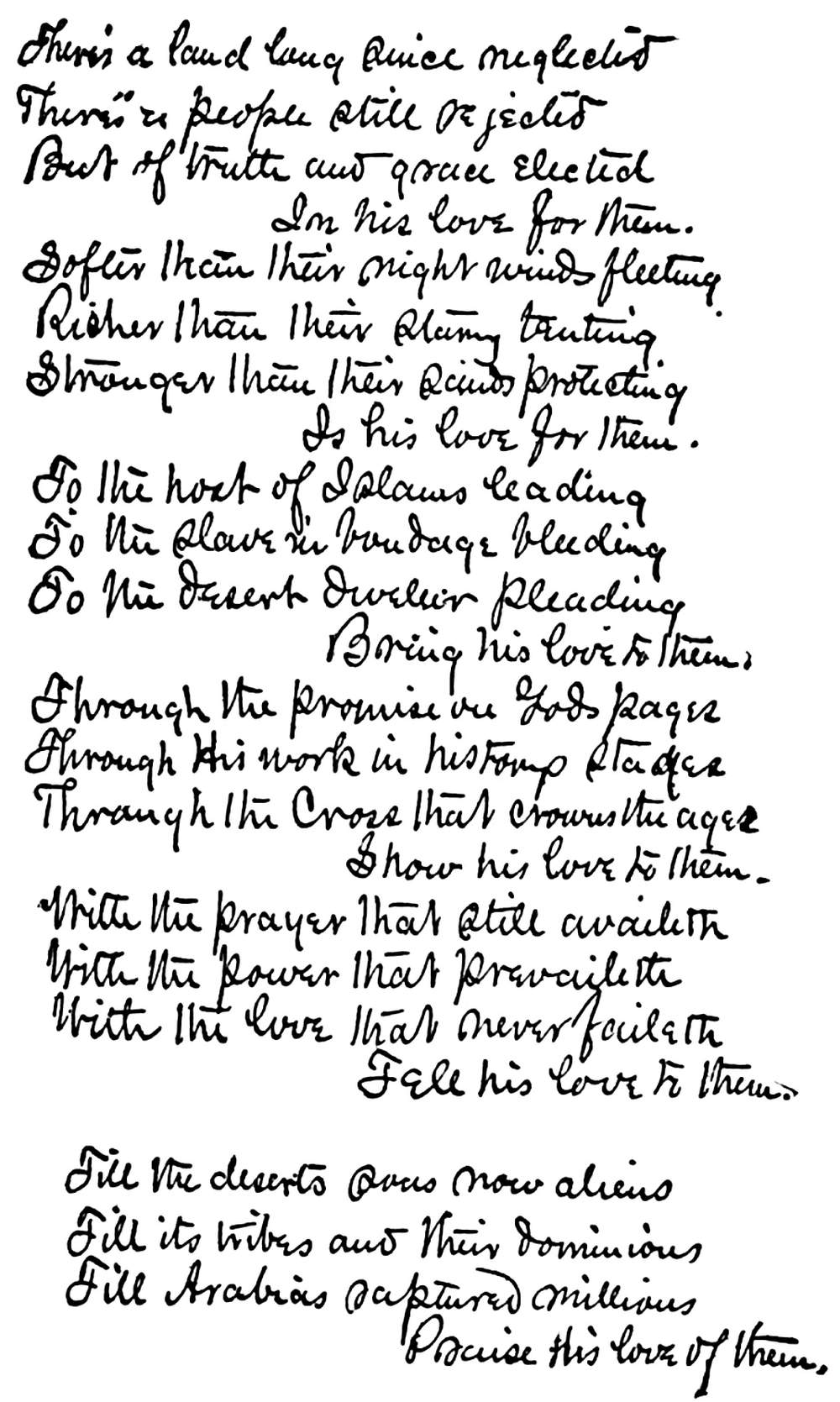 We send these chapters on their errand, and hope that especially the later ones may reach the hearts of the Student Volunteers for foreign missions to whom they are dedicated; we pray also that the number of those who love the Arabs and labor for their enlightenment and redemption may increase.