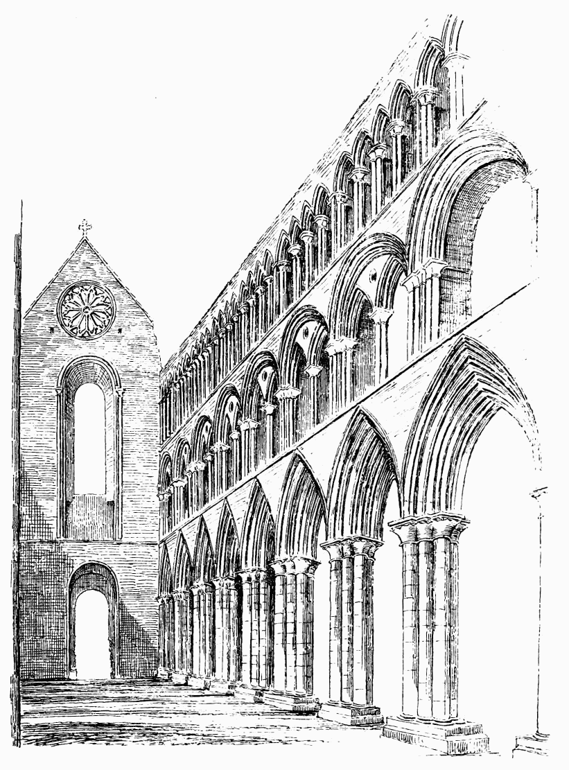 Various branches of early art in Scotland—Cells of Anchorites—Celtic art—Round towers and sculptured monuments, succeeded by Norman and Gothic architecture—Native developments—Previous writers on Celtic art (3)—Primitive Christianity—Candida Casa—Crosses and caves—St. Palladius—Irish monasteries—Wattles—Beehive cells (7)—Cashels—“Deserts”—Christian structures (9)—Irish MSS. and slabs—Symbolic sculptures—St. Columba—Iona—Missionaries from Northumbria—Lindisfarne—Roman influence—St. Augustine—Benedict Biscop—St. Winifred (12)—Pre-Norman churches—Columbans expelled—Culdees—Roman system introduced (14)—Revival of Celtic system—Celtic art (15)—Symbols (16)—Upright slabs (17)—Development of design of—Sculptures, origin of—Western crosses (20)—Early Ecclesiastical Structures in Scotland (24)—Beehive huts—Churches—Round towers (26)—Brechin and Abernethy—St. Regulus—Churches erected by Queen Margaret—Alexander I.—David I.—Parochial system (31)—Romanesque architecture (32)—Vaulting, development of (34)—Subordination of members (35)—Norman Style, examples (36)—Norman Style in Scotland (38)—First Pointed Style (39)—Salisbury Cathedral (41)—France and England compared (43)—Examples of the style (45)—First Pointed Style in Scotland (46)—Derived from England (47)—Examples (48)—Architecture of Fourteenth, Fifteenth, and Sixteenth Centuries in Scotland (50)—Divided into Decorated and Late Pointed (52)—Middle Pointed or Decorated Style (53)—Middle Pointed or Decorated Style in Scotland (55)—Examples—Third or Late Pointed Style (58)—Examples—Third or Late Pointed Style in Scotland (60)—Effects of English and French influence (62).