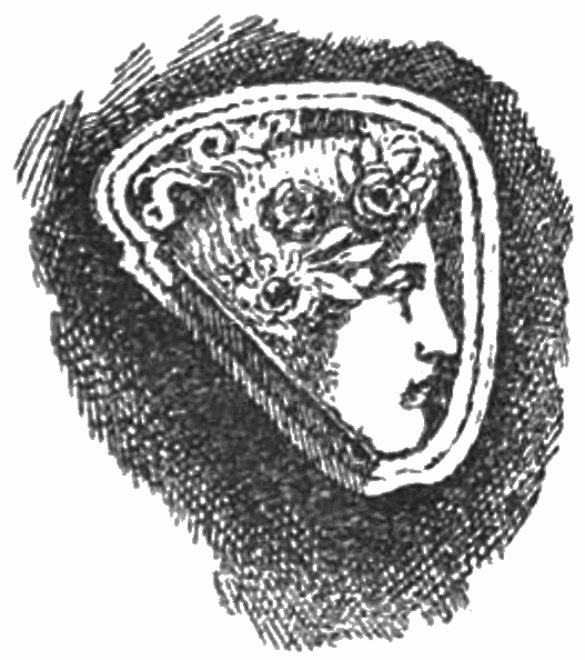 The dispute about the Flora indirectly brought about Pistrucci’s appointment to the Mint as chief engraver, and he designed and executed the “George and Dragon” among other works. Afterwards a considerable amount of jealousy was created by his employment amongst the officers of the Mint, and the members of the Royal Academy were divided about his appointment, one portion insisting that native talent should be encouraged, the other division holding that he was the best living engraver. To restore peace, his appointment was subsequently styled that of “chief medallist.” He cut two portraits of Her Majesty in onyx, one as Princess, and the other as Queen wearing a diadem. On retiring from the Mint he took a cottage at Old Windsor, where he died in his seventy-first year, in 1855, only thirty-five years ago, and recently enough for him to be well remembered by a few living19 men. His connection with our own day, and the distinction to which one of his pupils has risen, justify the introduction of his name into this book. His daughters, before their father’s death, returned to Rome, where they practised Cameo-cutting with great success.