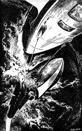 As soon as the Albion was safely out of range of the League ships, the two officers were joined on the bridge by Master Gunner Cliff Irvington. They discussed the narrow squeak for a few minutes. At length Irvington punched out his cigar and confessed, "I could stand a drink."