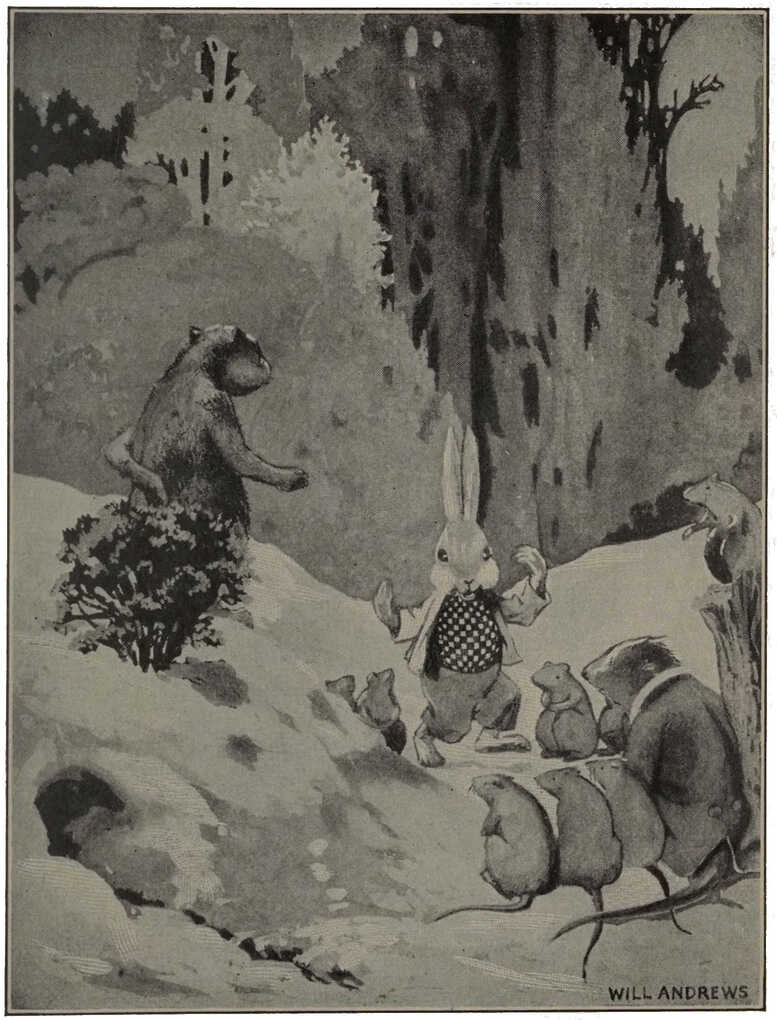 You see he hadn’t been caught. He’d dug into it on purpose, because those nice little mice had invited him. And there the three of them were busy feasting when they heard the clump! clump! clump! of the clumsy hind paws of that little boy.