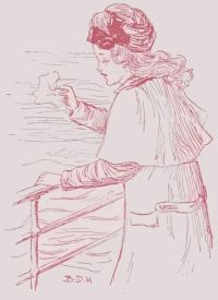 When Freda had bidden them farewell, a week before, she had told Mrs. Edgecombe that she should be married within a week, so of course they were very much surprised to see her there. While Professor Edgecombe was explaining to the official, Freda told them that she had made Eric take her to New York on a wedding-trip, especially to see them sail. She had already entrusted the children with a little box of presents for her family and now she proudly showed Mrs. Edgecombe a photograph of her husband and herself, asking her to give it to her old mother with her own hands. Mrs. Edgecombe promised readily and Freda left the ship content. The last thing that the children saw, as the dock faded from view, was Freda, waving her handkerchief in farewell.
