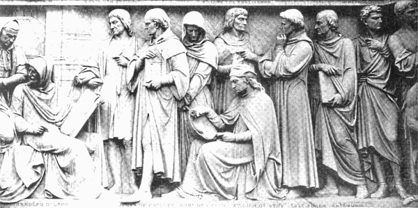 For the first time since the creation of the French Academy at Rome, a woman has been admitted as a student at the Villa Medici. Mlle. Lucienne Heuvelmans, the successful winner of the famous "Prix de Rome" for sculpture, had to compete against nine other contestants, but her remarkable ability compelled the judges to decide in her favor and to establish an entirely new precedent. Her subject was The Sister of Orestes Guarding her Brother's Sleep.