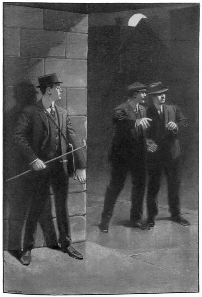 Ned and Alan appeared, hat in hand, and were cordially greeted by their newspaper friend.[20] As they entered the room, the earlier visitor brushed past them on his way out, staring almost rudely in each boy’s face as he passed.