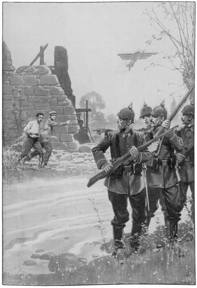 Wild-eyed and remorseful for the awful necessity of their deed, the boys now saw the light aeroplanes darting up to block their path. The futility of their trying to stop an airship when a Zeppelin twenty times their size had failed, did not seem to occur to those daring German aviators.