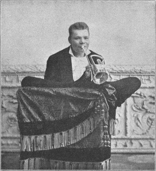 Wo »Turtle-George« auch auftritt, überall ist er der Cassen-Magnet und sein Podium stets von Besuchern umdrängt, und ist er auch jedem Kinde bekannt, so lässt[S. 66] seine Anziehungskraft doch nicht nach — ausser Engagement ist er nie. — Er ist sehr musikalisch, singt gut und ist Virtuose auf der Mundharmonika.