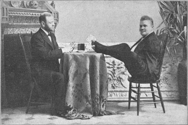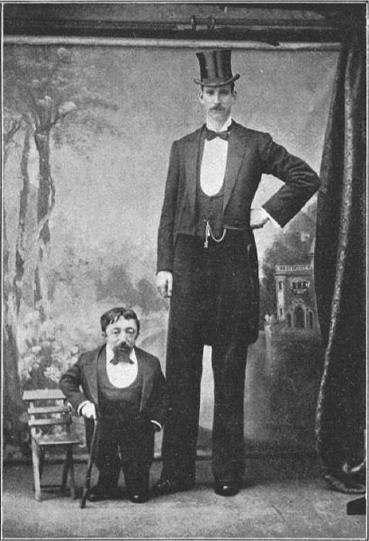 Frank Home, der Sohn eines Zimmermanns, ist aus Ohio, etwa vierundzwanzig Jahre alt, fünf Fuss und zwei Zoll hoch, aber 412 Pfund schwer und George Moore, eines Uhrmachers Sohn, ist aus Helena (Nord-Amerika), etwa zweiundzwanzig Jahre alt, sechs Fuss und einen Zoll hoch, aber nur 84 Pfund schwer.