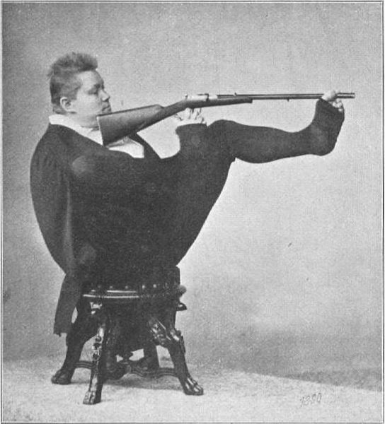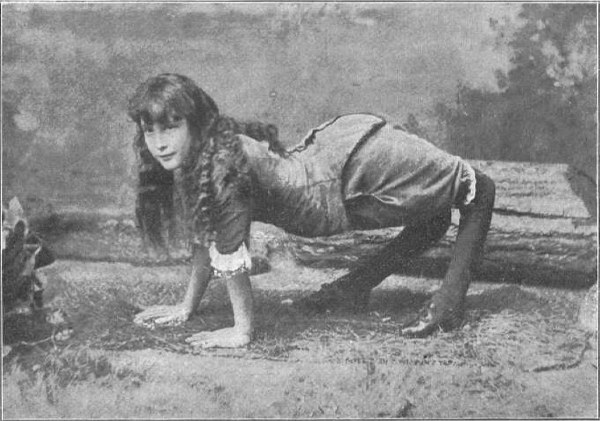 Dass diese Frau mit einem Bären nichts gemein hat (ausgenommen das schöne Bärenfell, das sie über dem Tricot-Anzuge trägt), ist wohl ebenso begreiflich, wie es unbegreiflich ist, dass das Publicum sich einen so colossalen »Bären aufbinden« liess, indem es einen bei Lichte betrachtet ziemlich plump inscenirten Mummenschanz für unverfälschte Natur nahm und anstaunte. Wenn dieses Wesen nach Professor Virchow's Angabe auch eine ganz seltene Abnormität ist, so ist der Titel »Bärenweib« doch durchaus ungerechtfertigt. Die Abnormität besteht nämlich darin, dass sich die Ellenbogen ganz dicht bei den Handgelenken und die Knie ganz dicht bei den Knöcheln befinden. Dadurch ist allerdings eine ganz entfernte Aehnlichkeit mit einem Bären hervorgebracht, aber nur, so lange das »Bärenweib« sich auf Händen und Füssen fortbewegt, also nur während der Vorführung; ist diese aber beendet, so geht es gerade so gut aufrecht, wie jeder andere gewöhnliche Sterbliche.