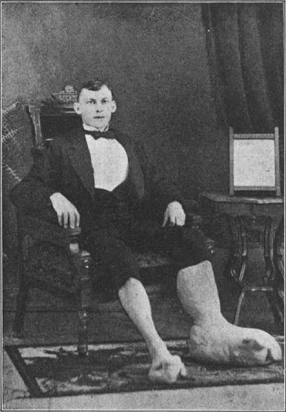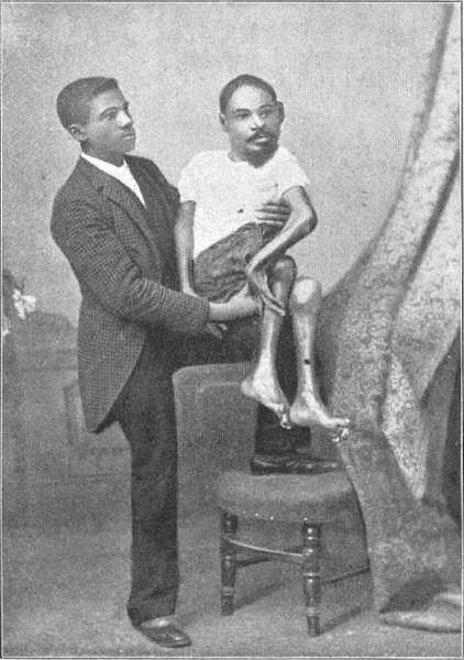 war im Staate Rochester, Nord-Amerika, geboren. Er war bis etwa zum dreissigsten Jahre ein grosser und kräftiger Neger, der für die Michigan Central Railway als Rangirer arbeitete. Im Winter 1876 wurde er Nachts von einem Frachtzuge überfahren und trug schwere Verletzungen davon. Nach mehreren Stunden wurde er aufgefunden und als todt ins Krankenhaus geschafft. Jedoch siegte seine kräftige Natur und er blieb am Leben. Acht Jahre lang konnte er das Bett nicht verlassen, und während dieses Zeitraums war er zum Skelet geworden. Infolge von Gelenk-Rheumatismus war totale Verknöcherung aller Gelenke eingetreten und er hierdurch vollständig bewegungslos geworden.