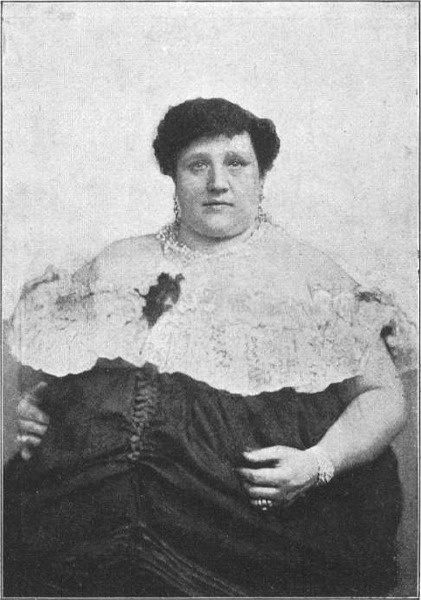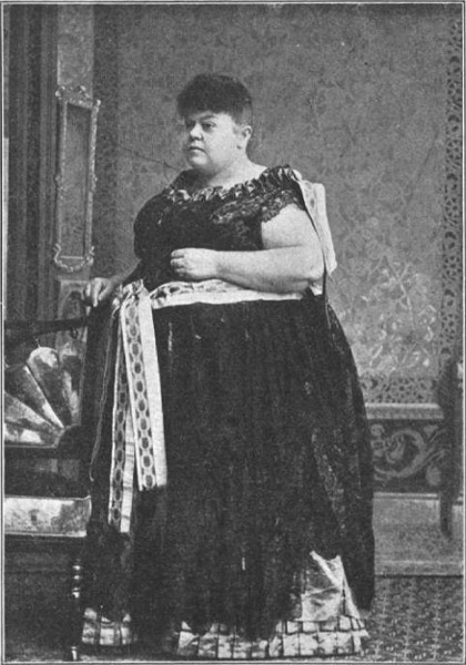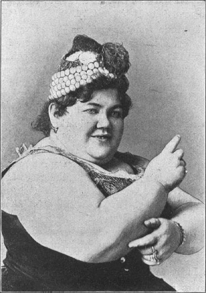 ist in Graudenz (Westpreussen) geboren, befindet sich aber seit dem achten Lebensjahre mit ihren Eltern in Amerika. Bis zum 19. Jahre war sie nicht aussergewöhnlich corpulent, nahm aber von der Zeit an schnell an Leibesfülle zu und wiegt jetzt, im Alter von 30 Jahren, 412 Pfund. Sie ist seit Jahren verheirathet (gilt aber auf den Affichen und für das grosse Publicum noch als Fräulein) und hat zwei reizende Kinder. Auch diese Abnormität erwirbt den Lebensunterhalt für sich und ihre Familie, indem sie sich in Museen etc. zur Schau stellt und bewundern lässt.