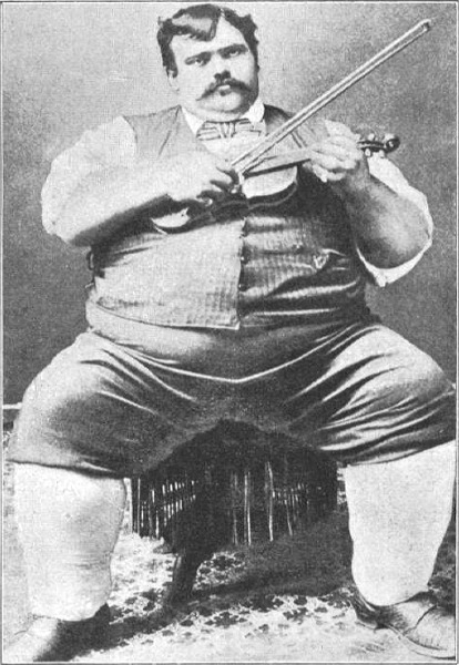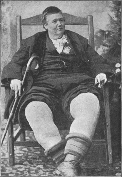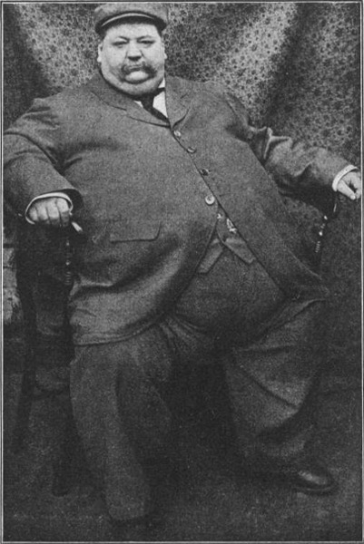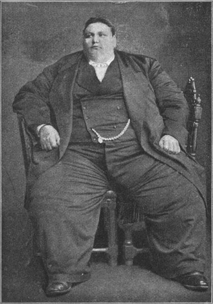 43 Jahre alt, 6 Fuss 5 Zoll (engl. Mass) hoch, wiegt 907 Pfund, und ist somit wohl die schwerste Person dieser Sammlung. Er ist Nordamerikaner, wurde geboren in Ja. Raiser, Ky. und lebt jetzt in Danville, Ind. Bei der Geburt wog er 11 Pfund, 11 Monate alt 77 Pfund, und 2 Jahre alt 206 Pfund. Zu jener Zeit bezog er Einnahmen von 1000 Dollar pro Jahr in der Baby-Ausstellung in New-York City im Jahre 1858. Sein Gewicht nahm mit dem fortschreitenden Alter ganz ausserordentlich zu, so wog er 5 Jahre alt 302 Pfund, 13 Jahre alt 405 Pfund, 21 Jahre alt 601 Pfund und mit 25 Jahren 725 Pfund. Er braucht 41 Yards Tuch zu einem passenden Anzug und 2-1/2 Pfund Wolle zu einem Paar Socken. Die Eltern waren nicht abnorm, so wog der Vater nur 115 und die Mutter 122 Pfund.