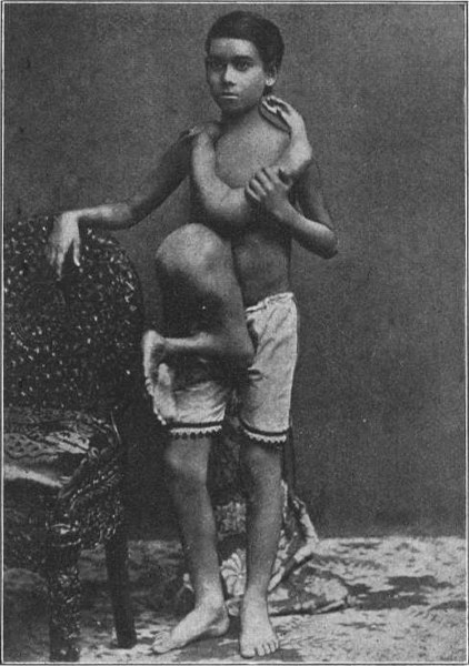 ist eines der grössten Phänomen, die jemals existirt haben. Aus seiner Brust ist nämlich der vollständig entwickelte Körper eines Mädchens, dem jedoch der Kopf fehlt, herausgewachsen und von sämmtlichen Aerzten, die Untersuchungen anstellten, wird behauptet, dass der Kopf sich in der Brust Laloo's befinde. Er wurde 1882 zur indischen Ausstellung nach London gebracht und nach Beendigung derselben in sämmtlichen Universitäten, Museen etc. Gross-Britanniens mit ganz colossalem Erfolg ausgestellt.
