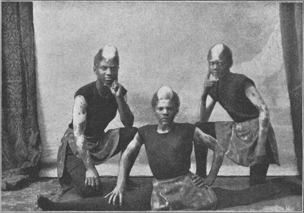 Da sie überaus gleichmässig, fast symmetrisch gefleckt sind, so sind sie eine bedeutende Attraction, während andere gefleckte Neger beiderlei Geschlechter, deren es eine ziemliche Anzahl giebt, meistens recht abstossend aussehen.