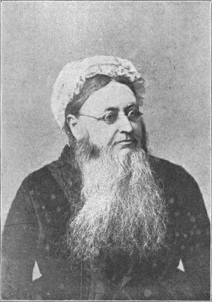 die den Vorzug hat, die Einzige mit grauem Barte zu sein, ist im Jahre 1832 in Lincoln in Nord-Amerika als Tochter kleiner Bürgersleute geboren. Da sich schon in ihrer frühesten Jugend die Spuren eines Bartes bei ihr zeigten,[S. 67] so barbierte sie sich selbst heimlich, um Niemanden in ihr »Geheimniss« einweihen zu müssen, als sie aber in ihrem achtundzwanzigsten Lebensjahre beide Eltern verlor und ganz mittellos war, da entschloss sie sich, ihren Bart wachsen und sich als »Bartdame« sehen zu lassen. Sie trat im Jahre 1862 zum ersten Male öffentlich auf, und da in jener Zeit nur wenig Abnormitäten bekannt waren, so hatte sie colossalen Erfolg.