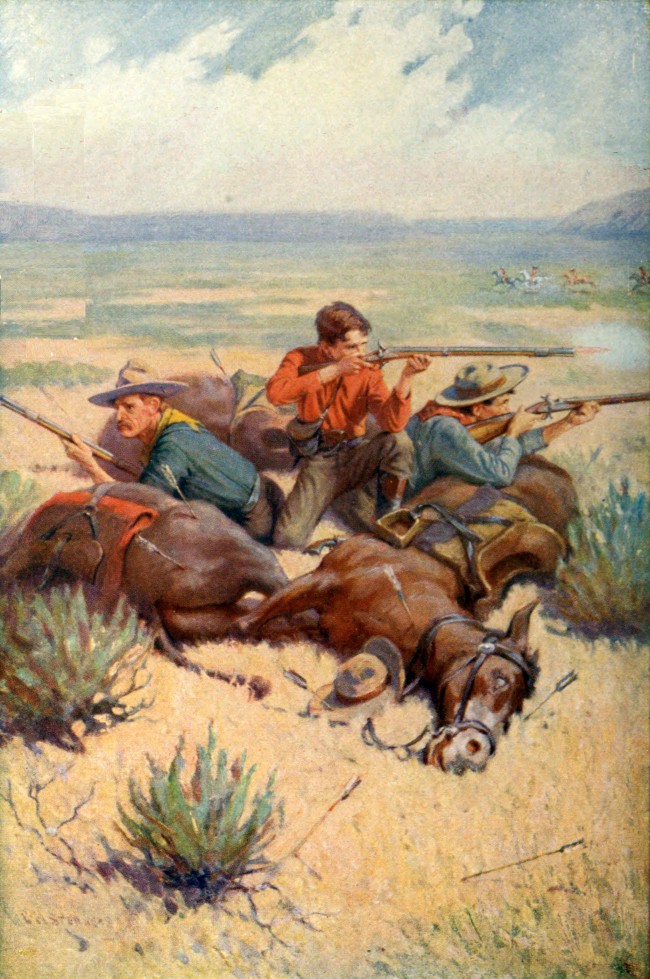 “You take my gun, Dave,” he ordered. “Don’t shoot unless you have to; and then shoot the ponies. Fight ’em off.”