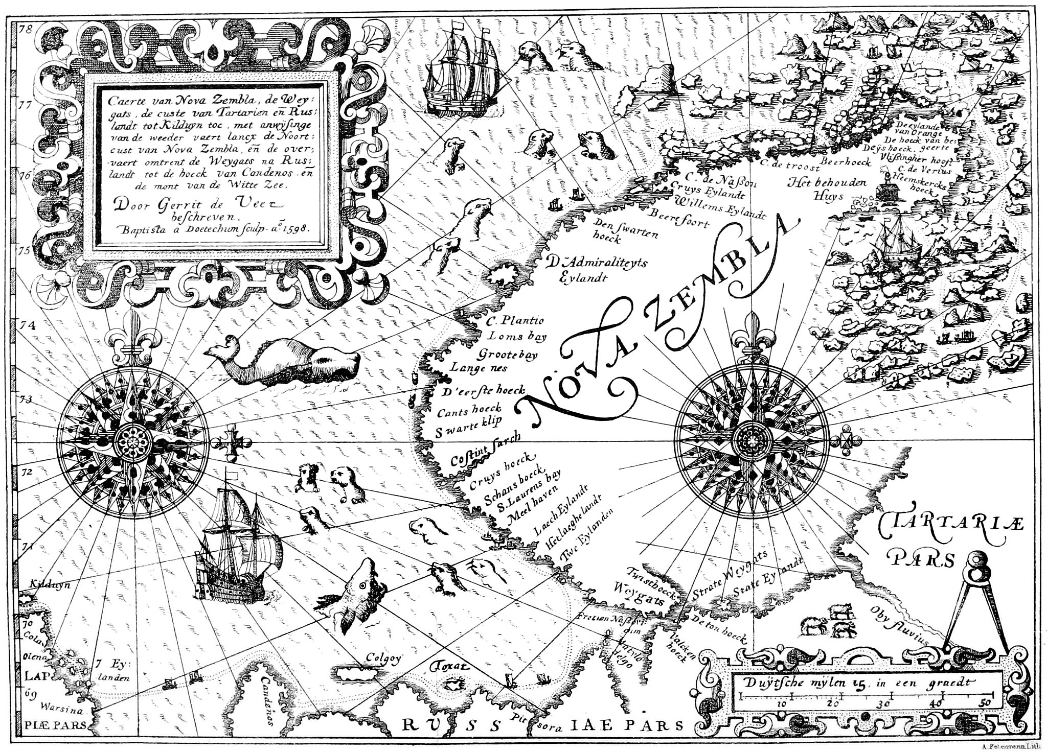 Caerte van Nova Zembla, de Weygats, de custe van Tartarien en Ruslandt tot Kilduyn toe, met anwijsinge van de weeder vaert lancx de Noortcust van Nova Zembla, en de overvaert omtrent de Weygats na Ruslandt tot de hoeck van Candenos en de mont van de Witte Zee.