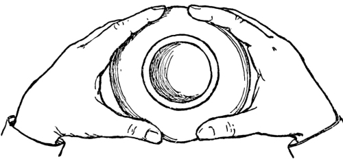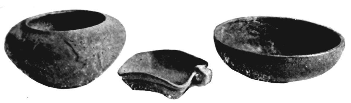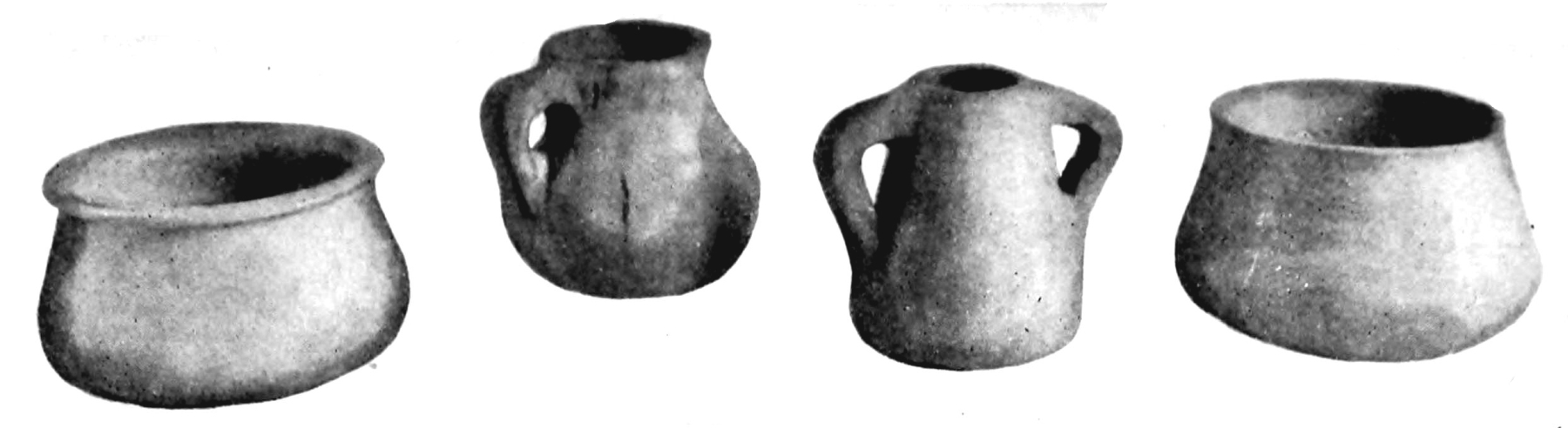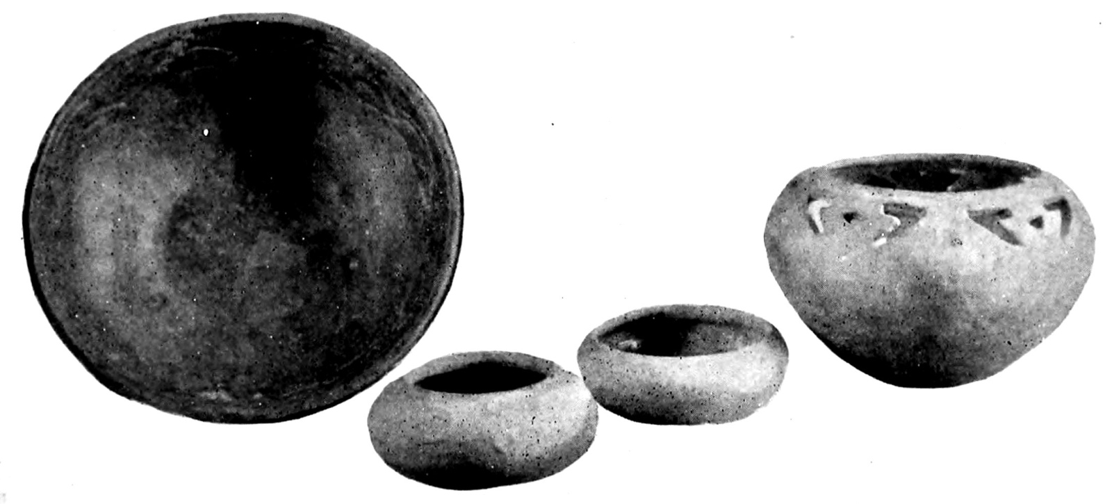 In shaping the pieces, the fingers did the work unaided, except where a basket or gourd was used as a mould, or where such simple tools as could be fashioned of clay, stone, or shell were employed. A piece of a gourd was sometimes held against the inner wall158 to support it while the outer surface was being scraped and smoothed with these rude tools.