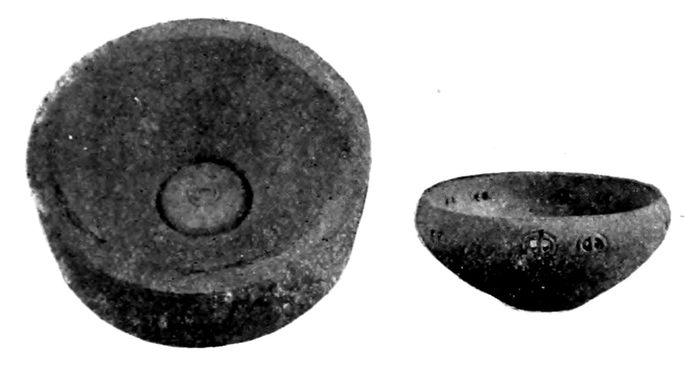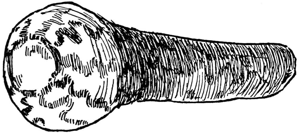 A curious-shaped implement, somewhat like a toadstool, was evidently a modelling tool—to support the walls of a partially stiffened piece of pottery from within, while the outer surface was finished with other tools.