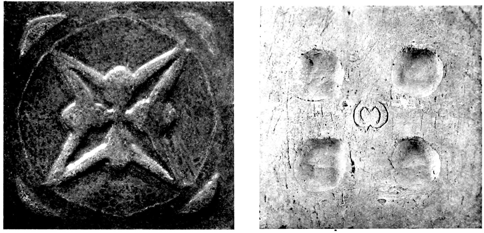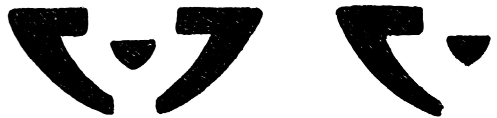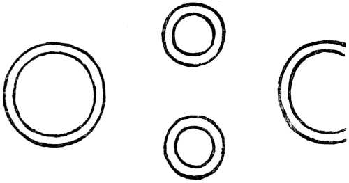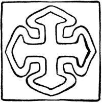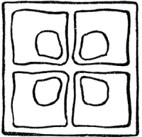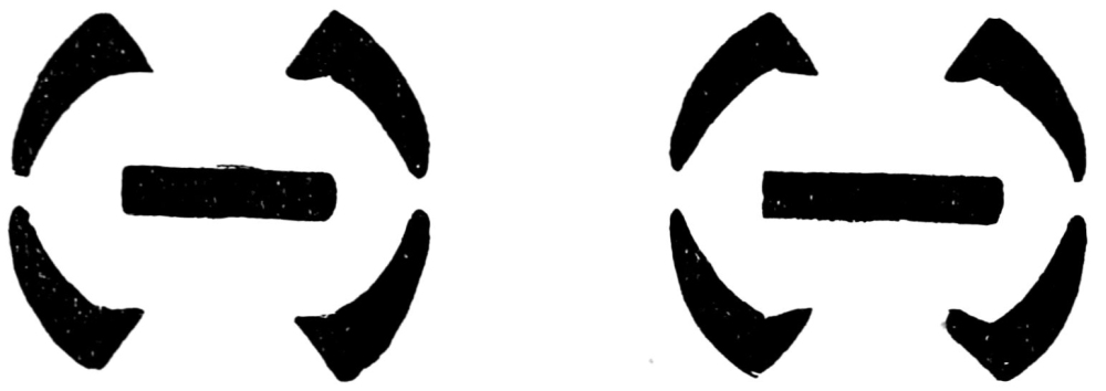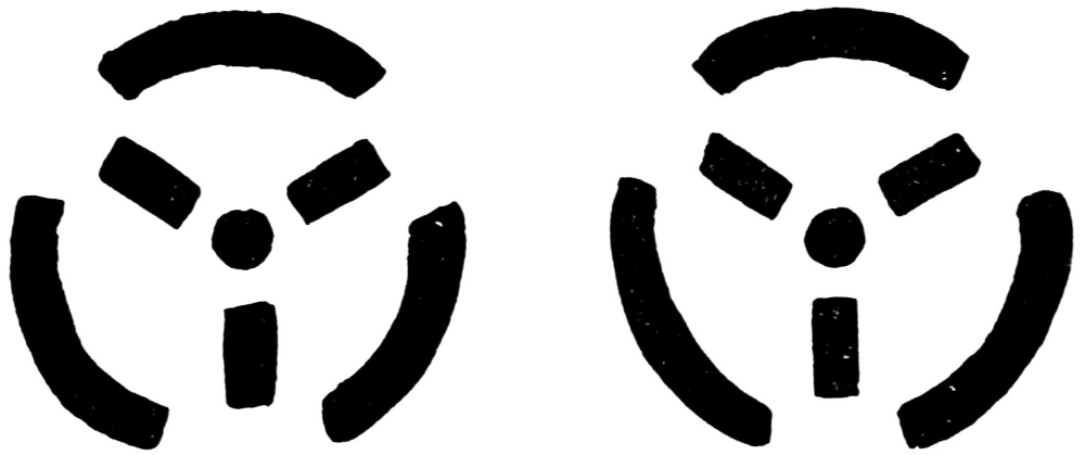 Many are the potters’ marks that have been used at Rookwood. Before 1886 there were eight in all. At that time, the mark shown in Fig. 66 was adopted. This was used, with the addition of a flame mark for every succeeding year, until 1900, when the mark was like Fig. 67. Since that date, a Roman numeral has been added below the mark, according to the year the piece was made. For example, the pieces of the present year have the Roman number IV. below the mark used in 1900.