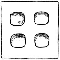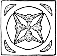 In decoration, the potters of each tribe had different ideas, as well as tools and devices for working them out. The fingers and nails were used to produce certain effects, and tools of various kinds were made for special purposes—pointed ones for incising, gouge-like tools to scrape away the clay, and all kinds of stamps for impressed designs. Some of the stamps were in paddle form (such as we use for making butter-balls), others were thin disks with indented edges, which were rolled over the soft clay surface.