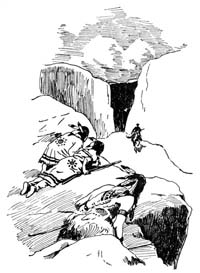 [33]On a knoll some little distance from the camp crouched several dusky forms. Low guttural tones came from the throats of the band of Indians, who in fierce war paint and with fiery eyes looked more like demons than men.